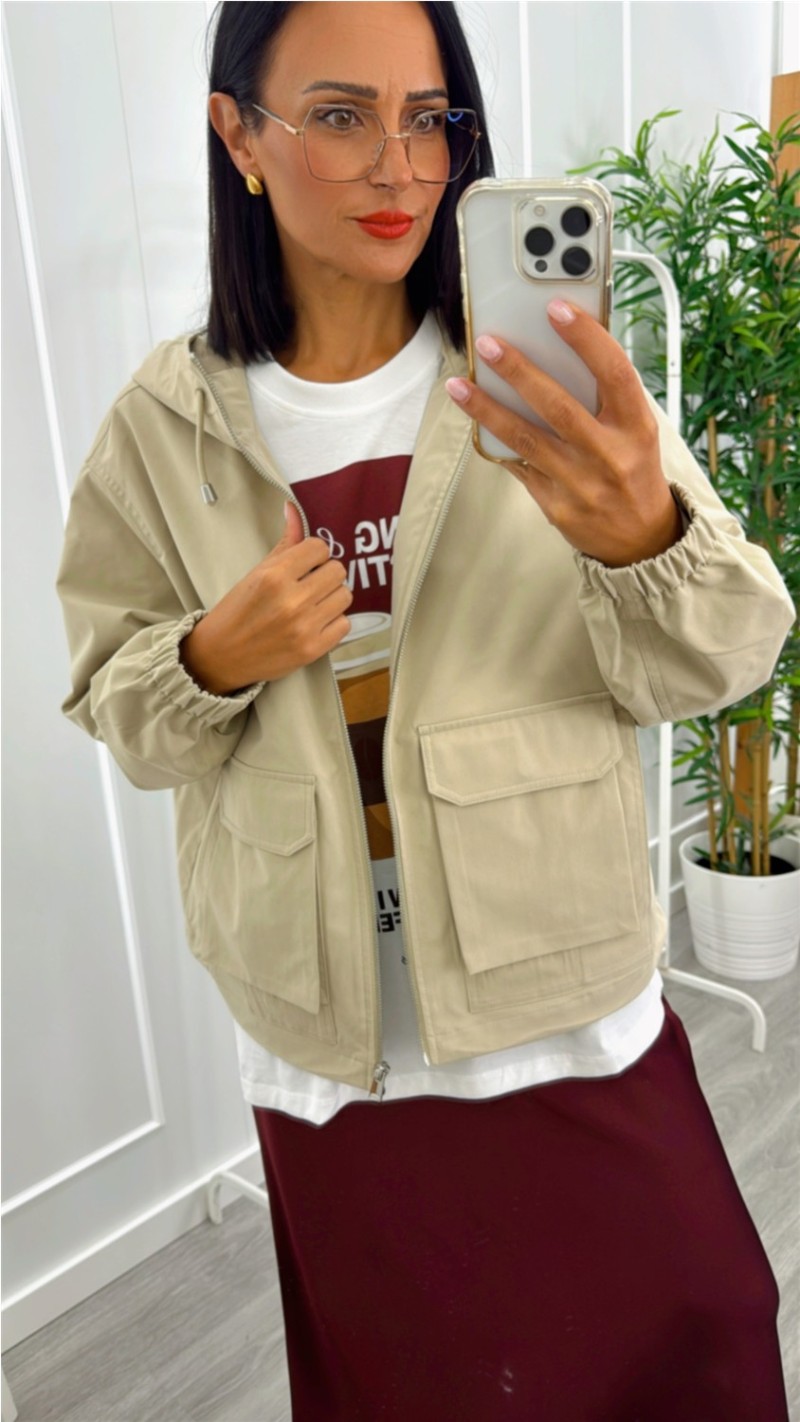 PARKA CON GORRO BOLSILLOS CUADRADOS