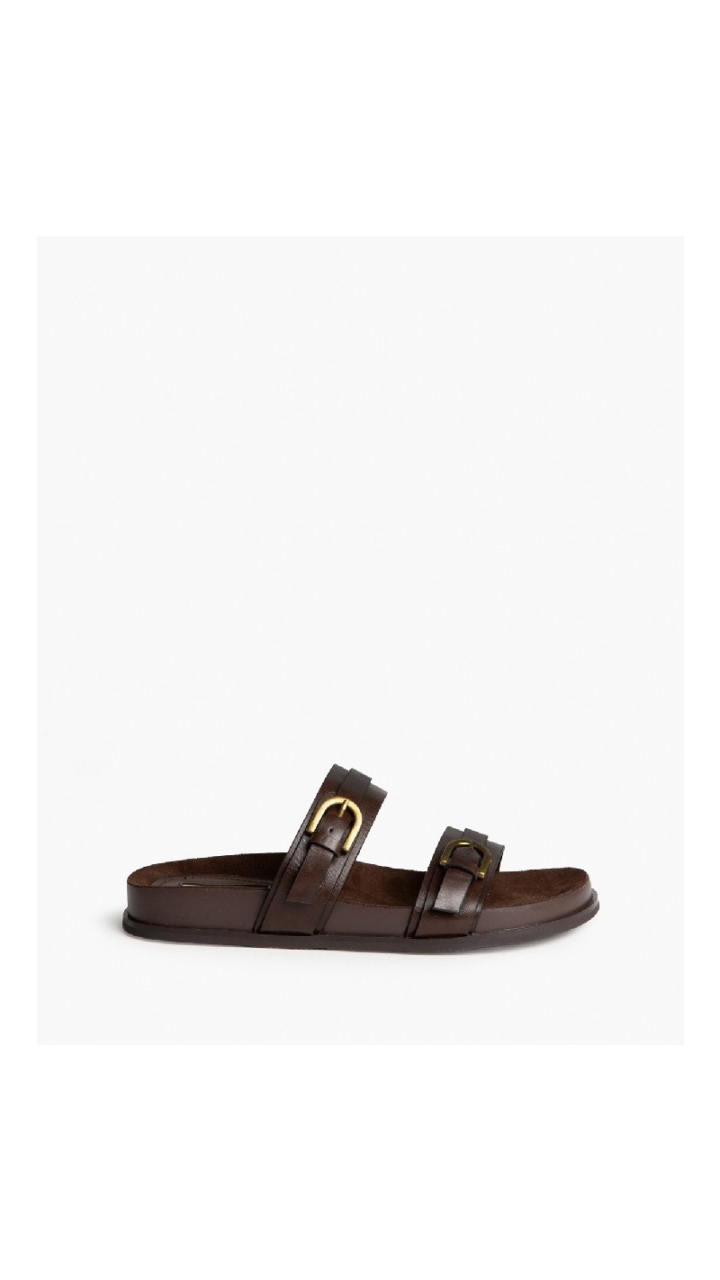 SANDALIA DOBLE TIRA HEBILLAS DORADAS MARRON