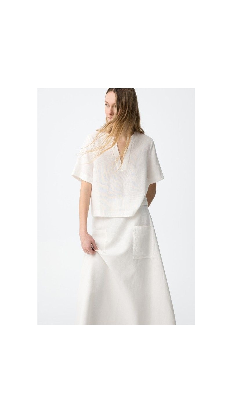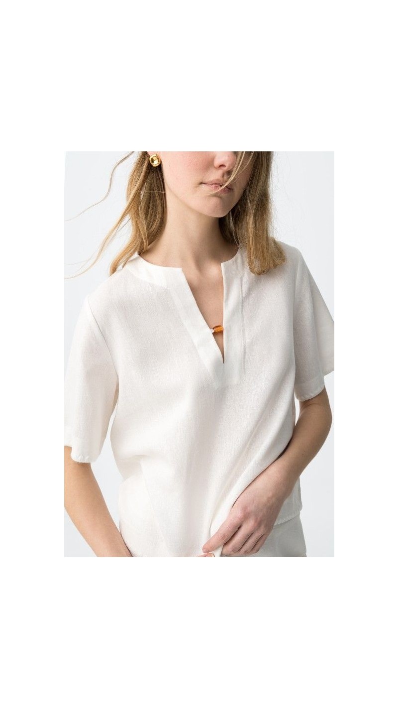 blusa lino y algodón blanco