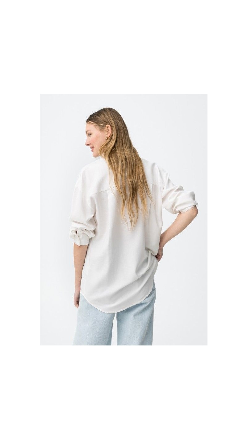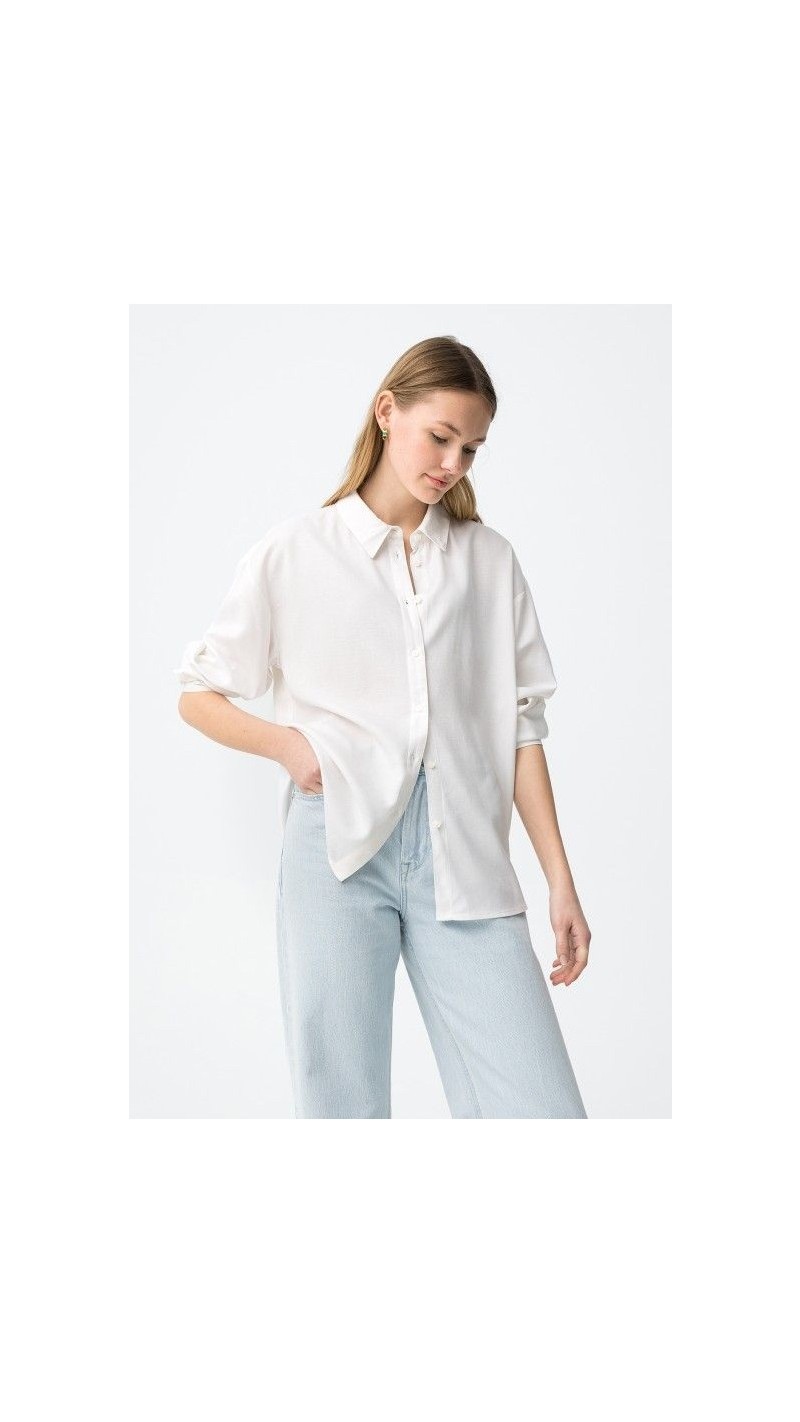 camisa fluída rayas y lisa, tejido suave BLANCO