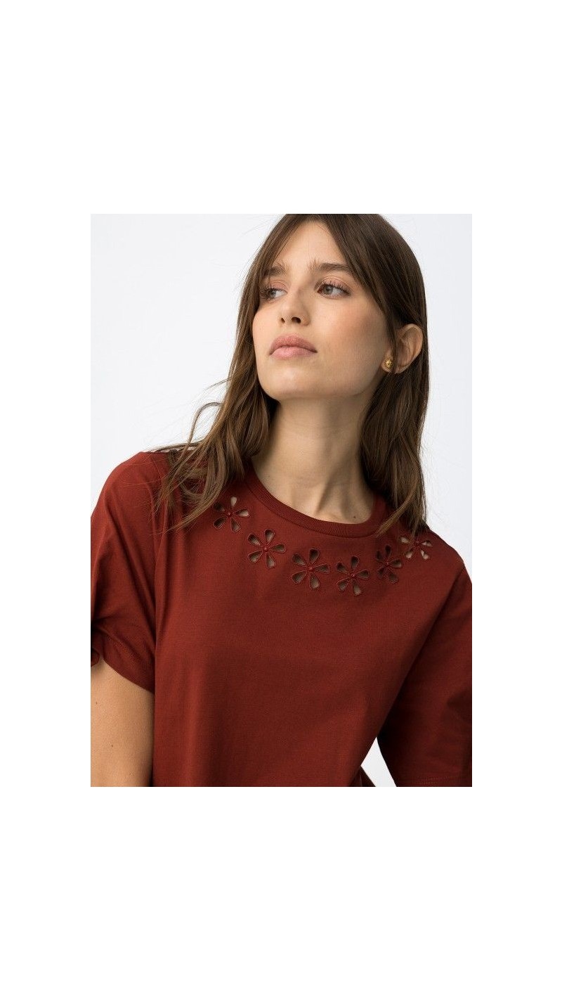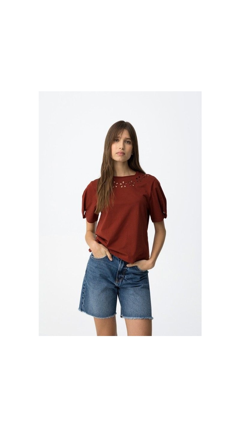 CAMISETA FLORES BORDADAS ESCOTE MANGA ABULLONADA COLOR FOTO