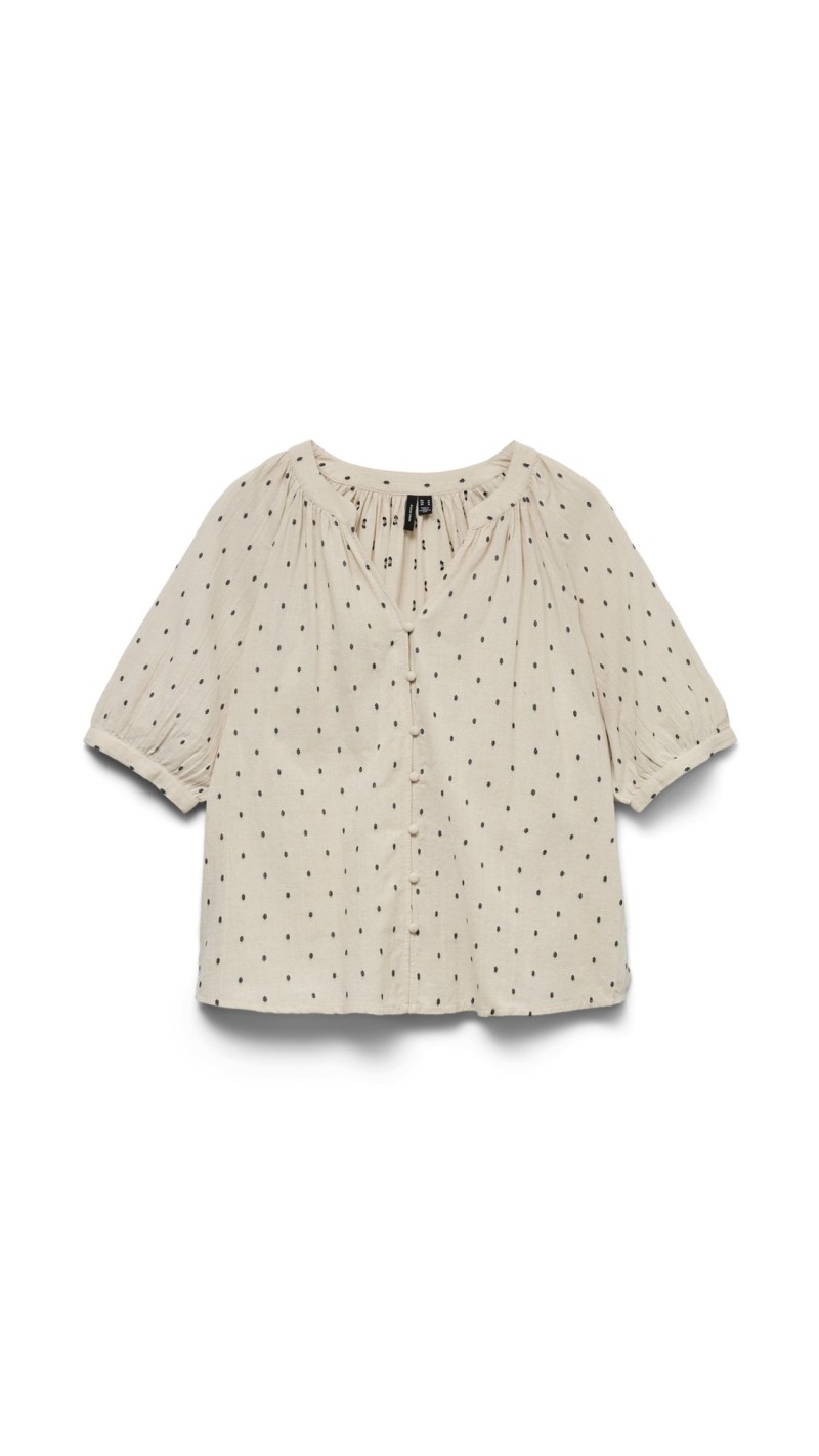 BLUSA BEIGE MANGA ABULLONADA