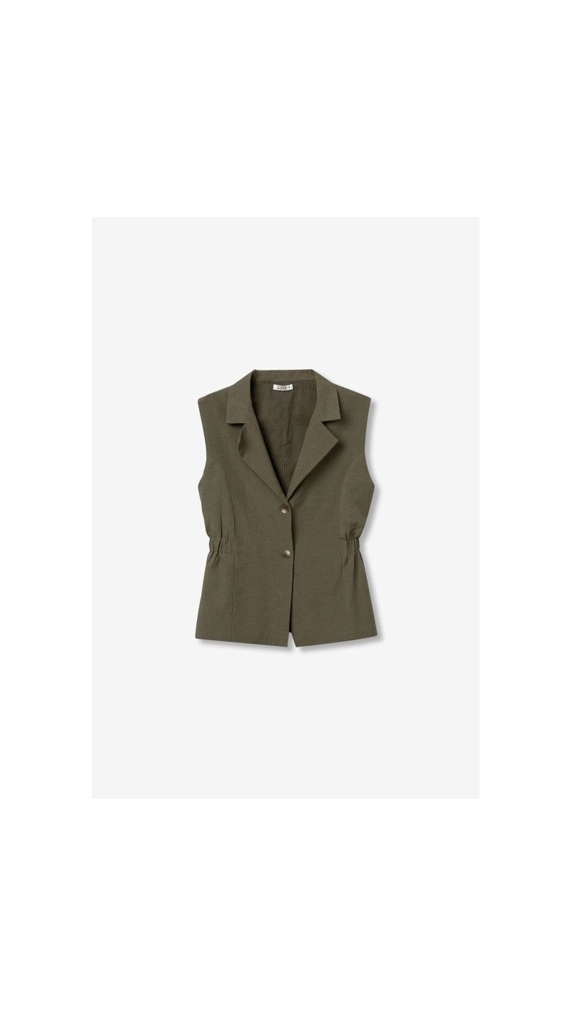 chaleco erva lino entallado en cintura VERDE