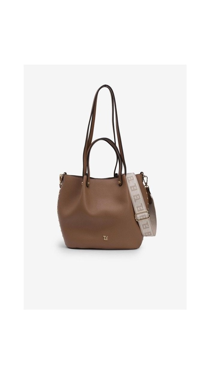 BOLSO BANDOLERA CON TIRA LARGA CAMEL Y BURDEOS