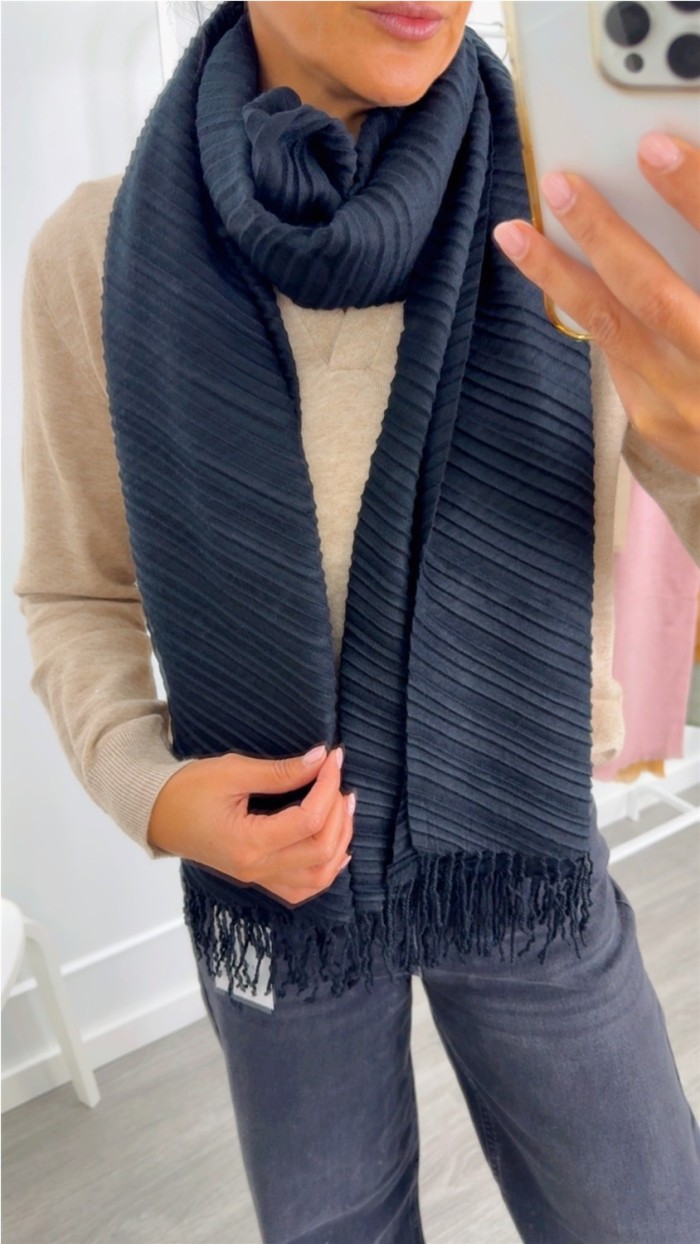PASMINA NEGRA PLISADA TERMINADA EN FLECOS