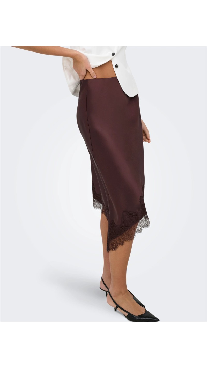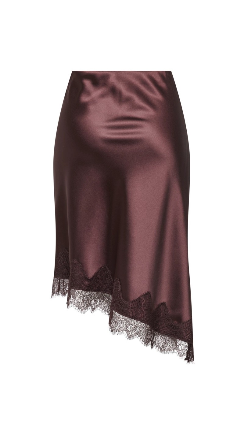 FALDA SATÉN CORTE DESIGUAL MARRON