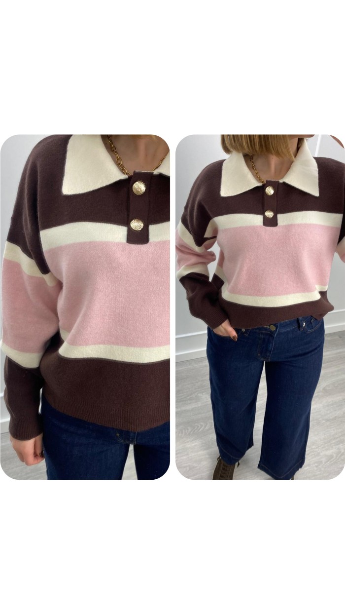 JERSEY TIPO POLO ROSA Y MARRÓN CHOCO