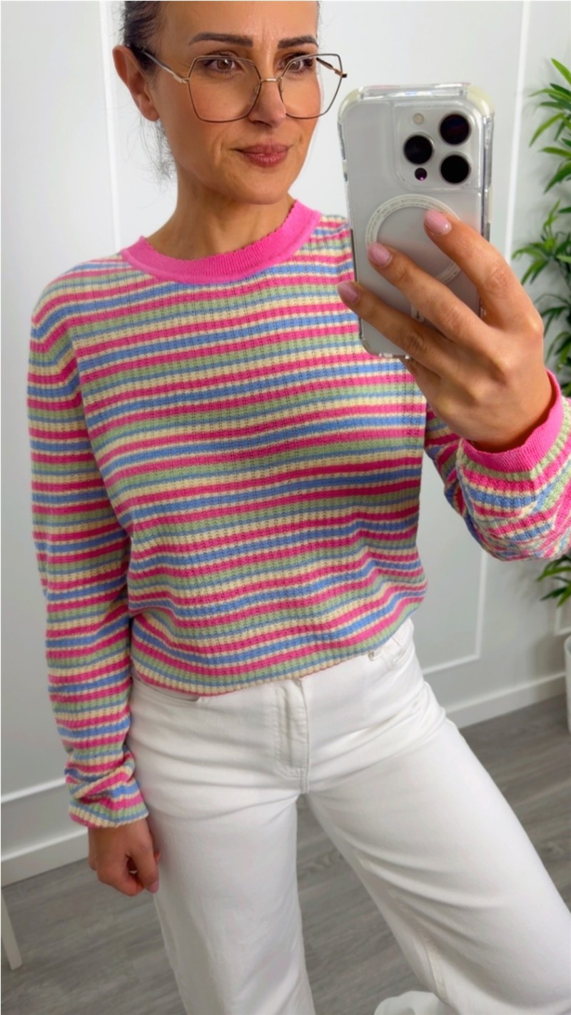 JERSEY MULTICOLOR PUNTO FINITO ROSA