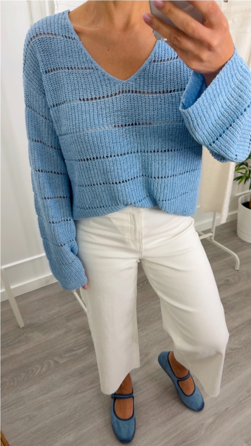 JERSEY PUNTO CALADO CUELLO PICO , ROSA, AMARILLO Y AZUL AZUL CLARO