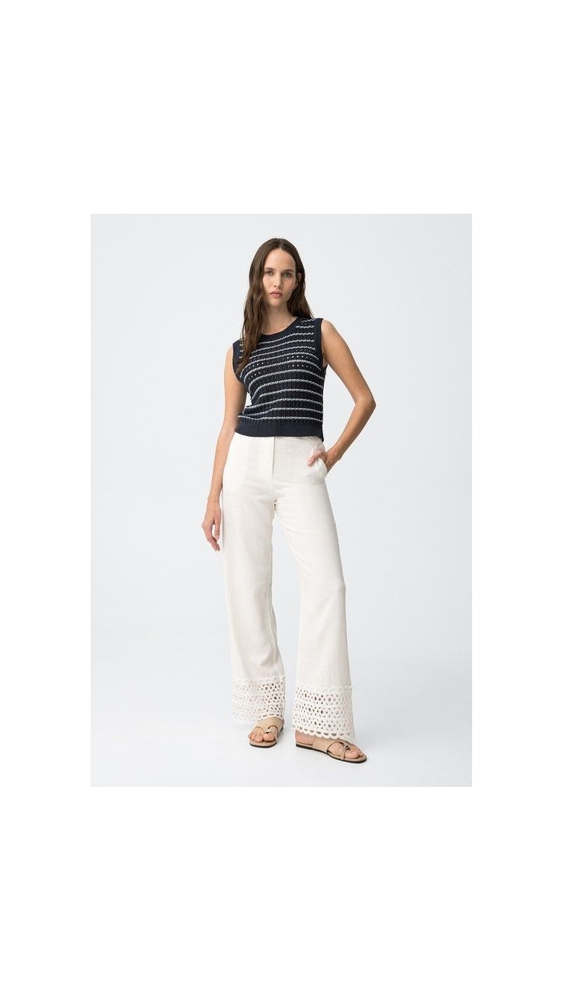 PANTALÓN LINO BORDADO CENEFA BAJO
