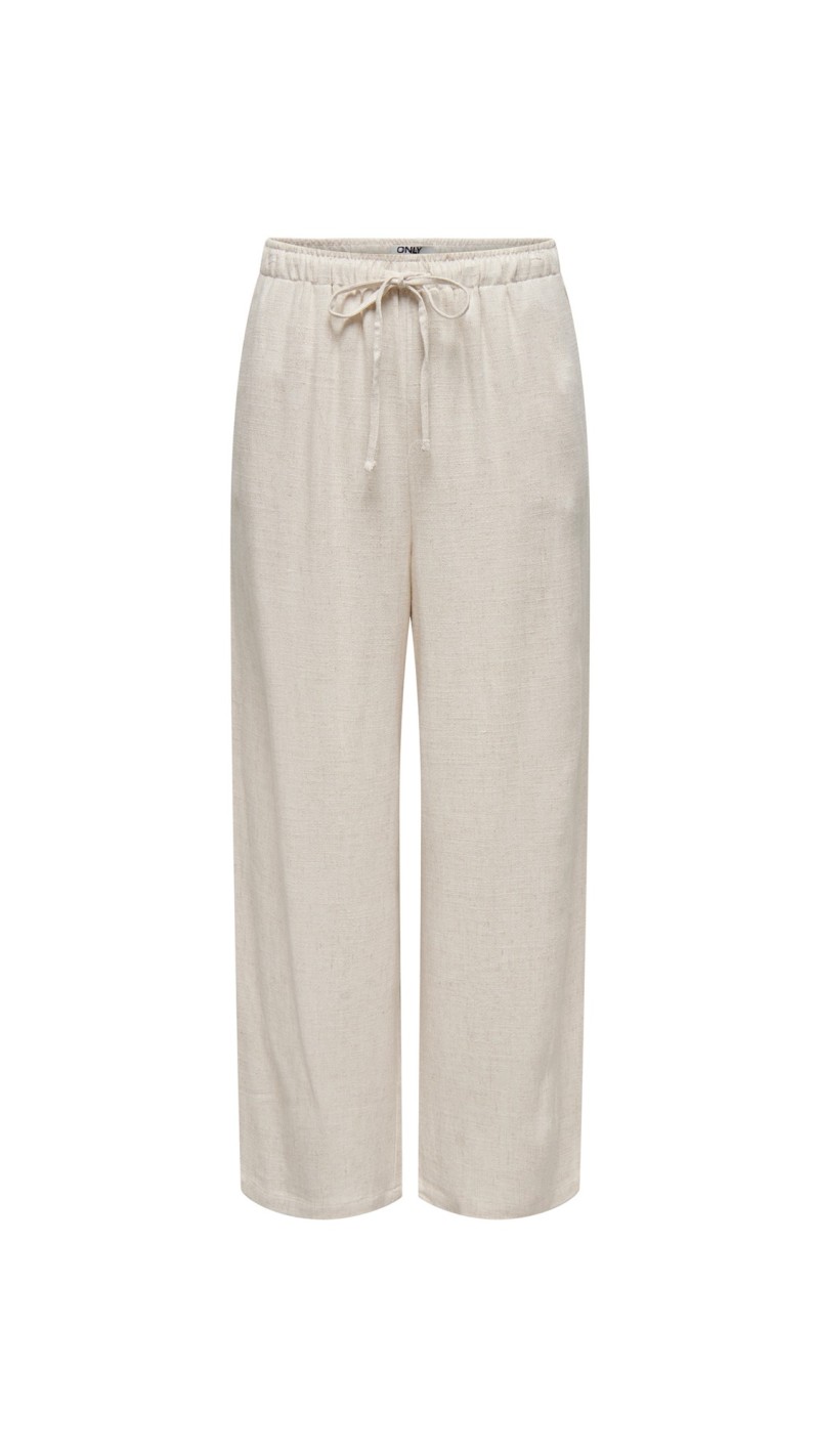 PANTALÓN BEIGE LINO DETALLE CINTO TELA