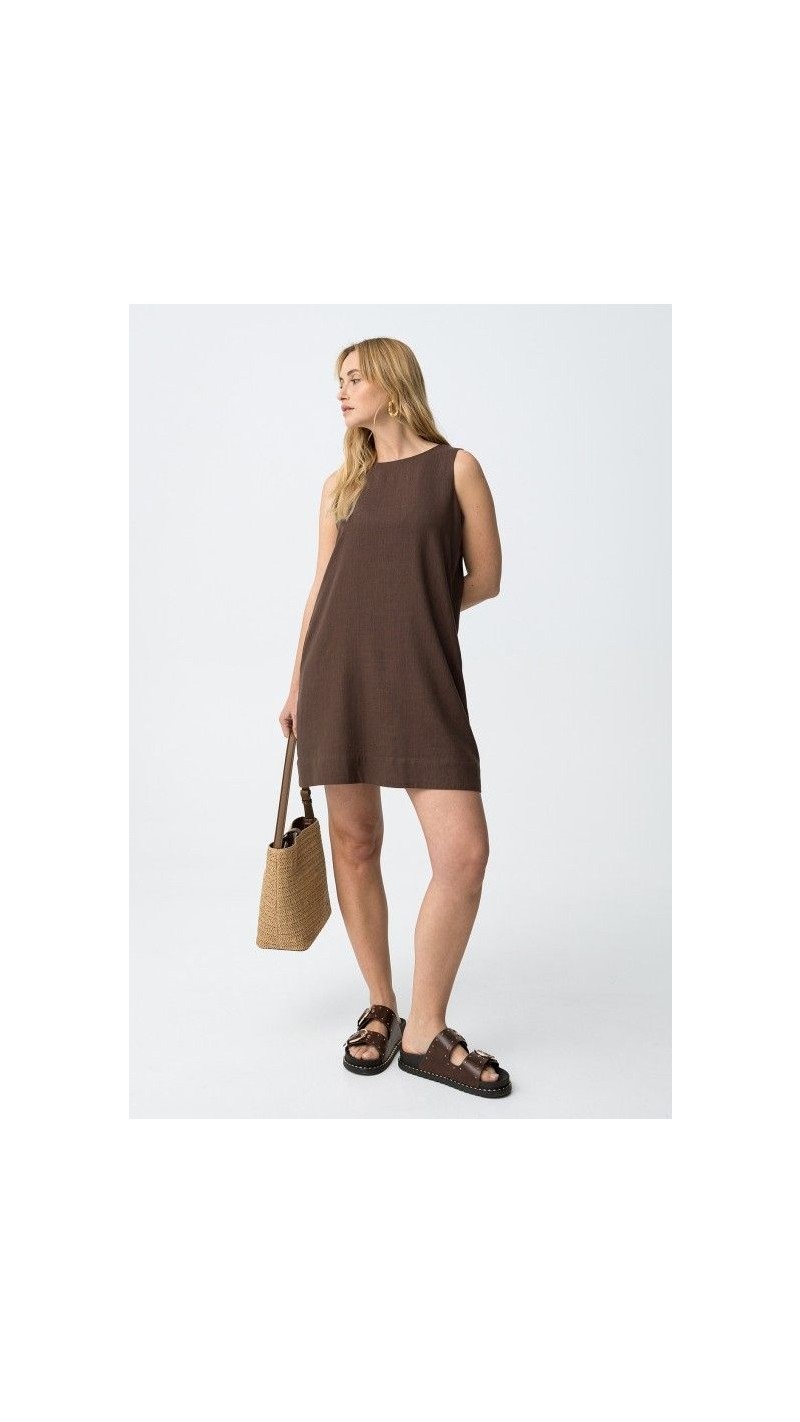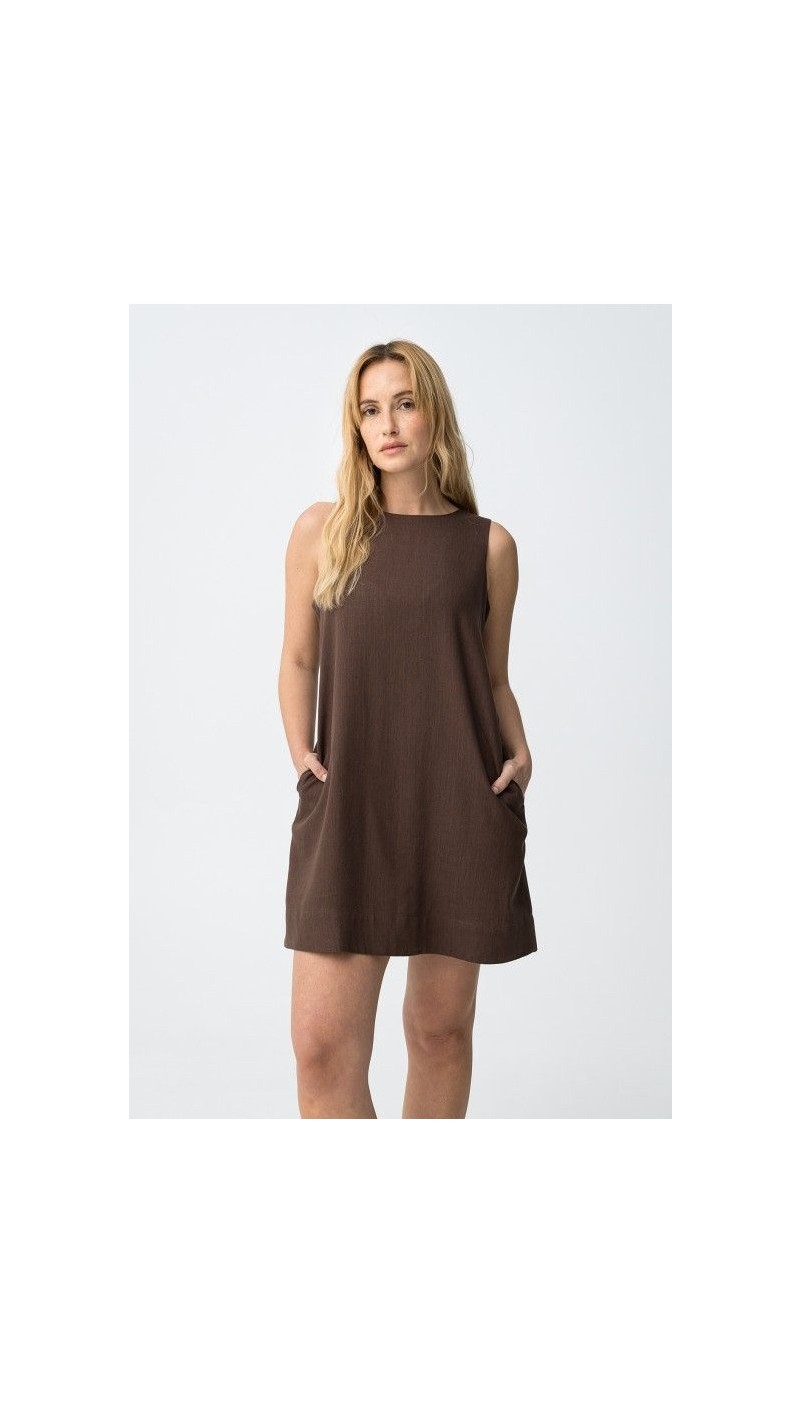 vestido corto con bolsillos laterales cuello redondo MARRON