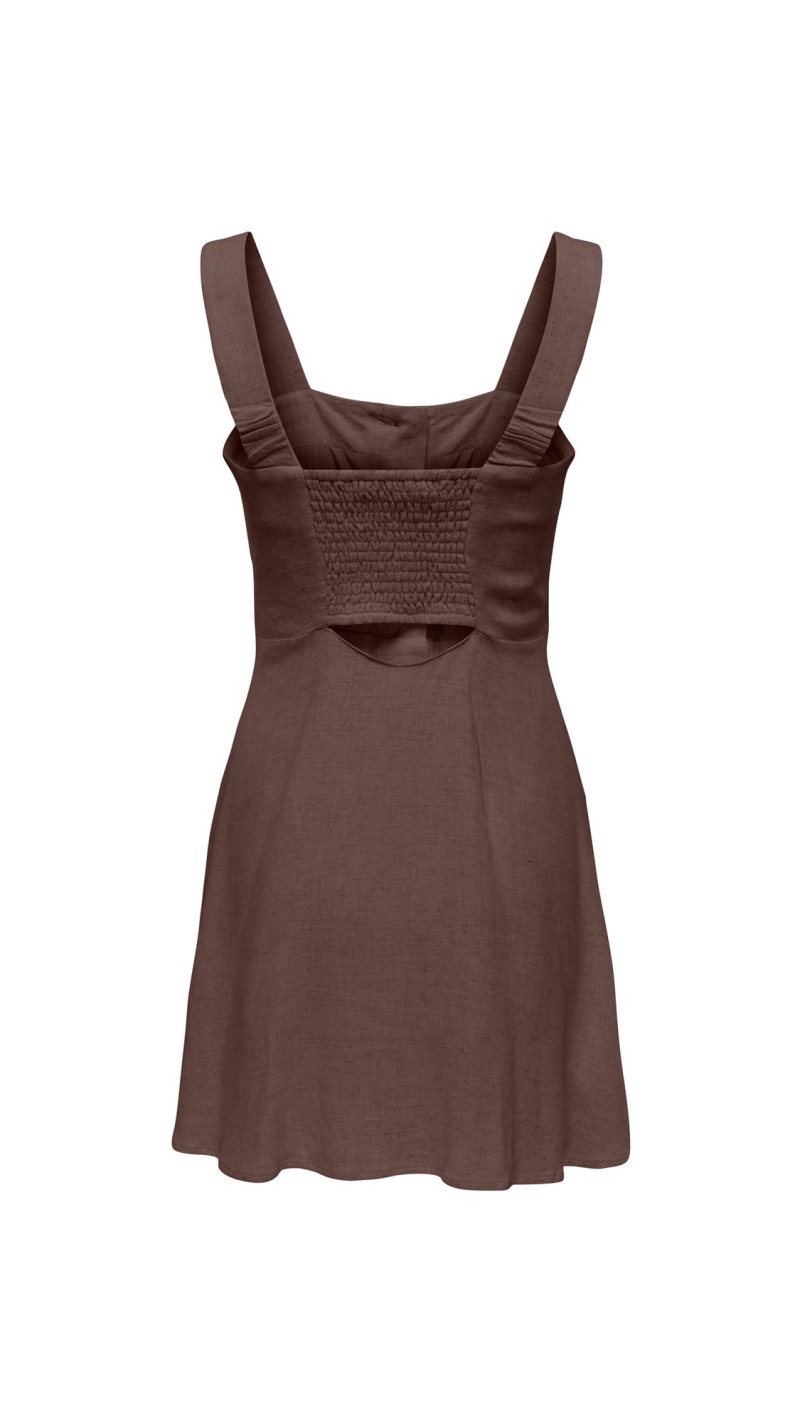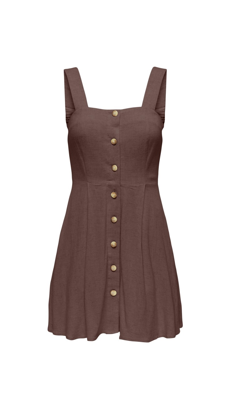 VESTIDO TIRAS DETALLE BOTONES MARRON