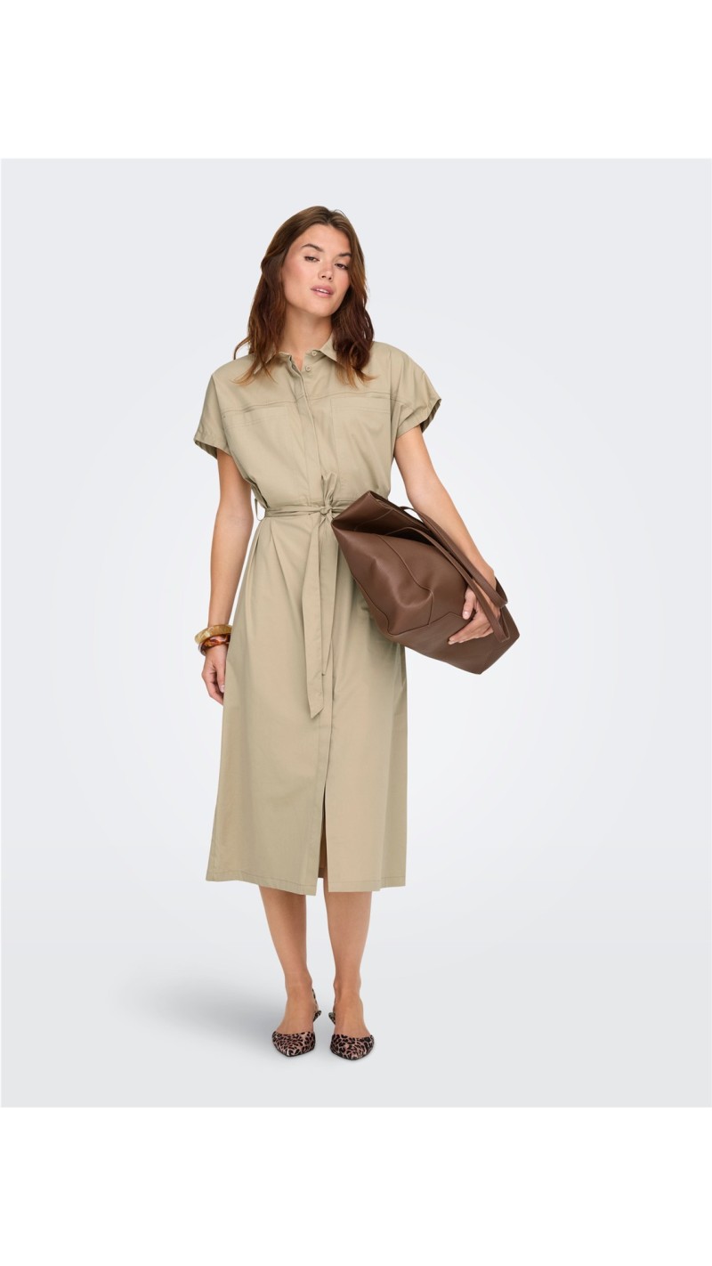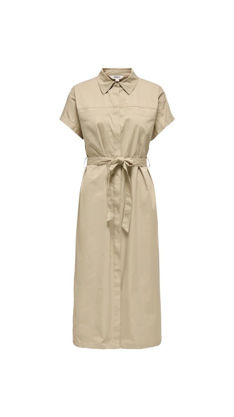VESTIDO SAFARI DETALLE BOLSILLO PECHERA TELA GABARDINA BEIGE