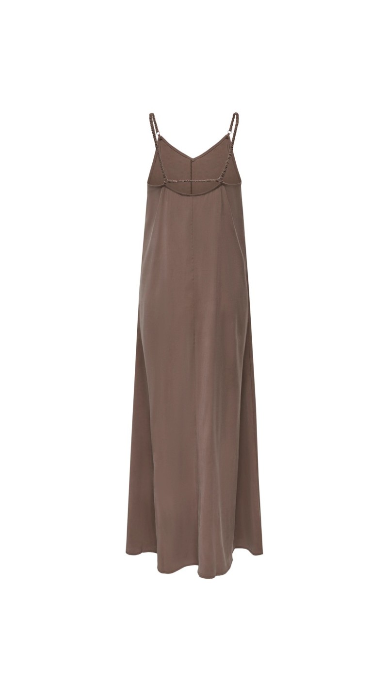 VESTIDO LISO MARRÓN GOMA ESPALDA TIRA