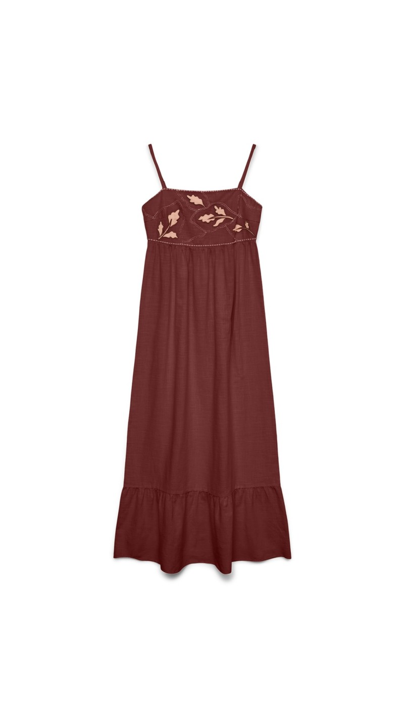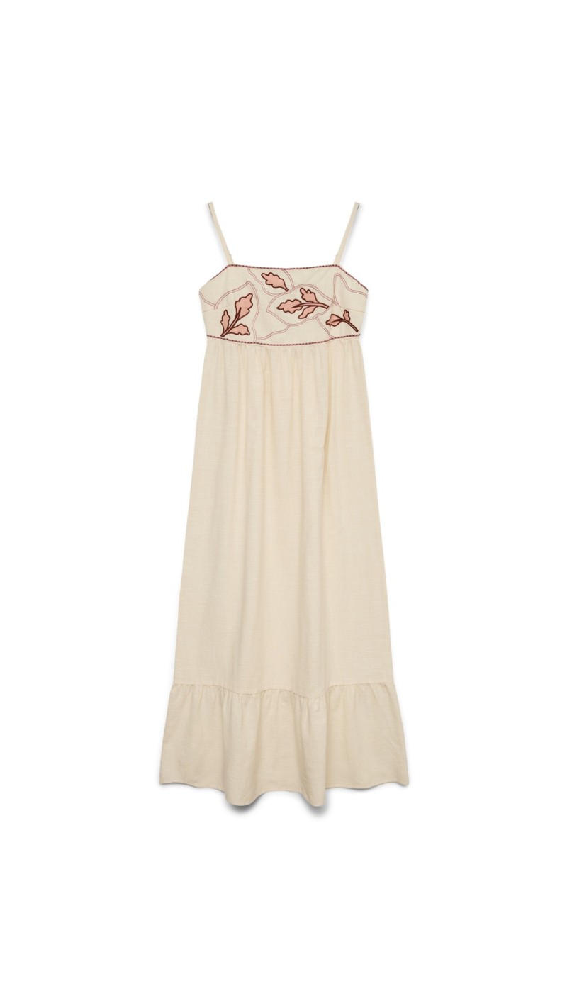 VESTIDO LARGO DETALLE BORDADO ESCOTE